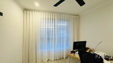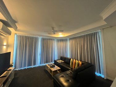 ✨ Sleek. Seamless. Custom. Cut-out pelmet × blockout curtains = the perfect match.  #HomeGlowUp #CustomMadeLook #CurtainInspo #KrestaBlinds